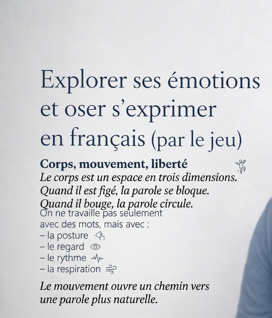 Viens découvrir comment exprimer tes émotions en français de manière ludique et décontractée ! Ce rendez-vous en ligne te propose des activités fun pour oser parler et partager tes sentiments grâce au jeu. Parfait pour ceux qui veulent apprendre sans stress et s'amuser en même temps. Prêt à te lancer et à booster ton français ? Rejoins-nous pour un moment convivial et enrichissant !